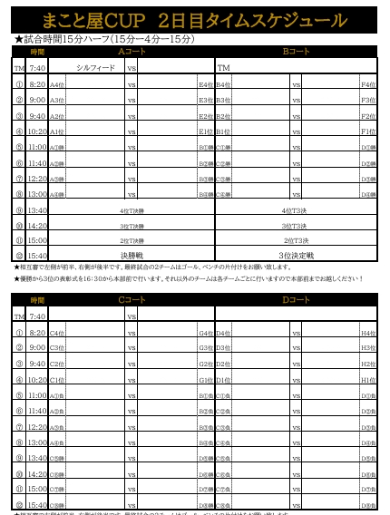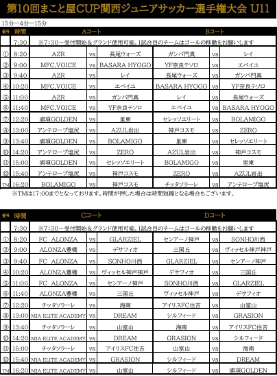 【更新】U11(秋)大阪遠征 2025年9月19日 チーム・スクール U11 2025年10月18日(土)~10月19日(日)で実施する、大阪遠征のお知らせです。 遠征案内 遠征のご案内 遠征のしおり 遠征のしおり 日程 10月18日(土)星取表 10月18日(日)対戦表 10月19日(日)トーナメント表 10月19日(日)対戦表