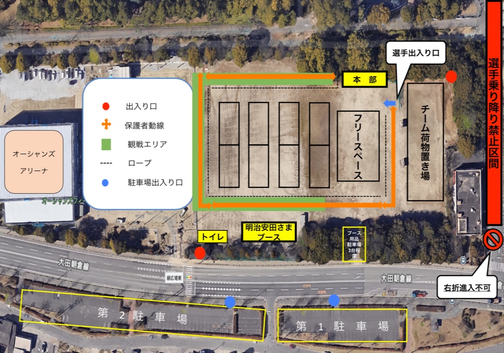保護者の方の駐車場はいずみパーキング、オーシャンズフィールドをご利用ください。