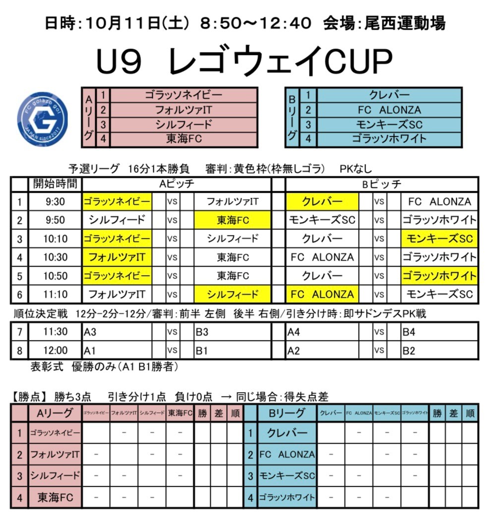 10/11(土)U9レゴウェイカップの日程が決まりましたのでご案内させていただきます。