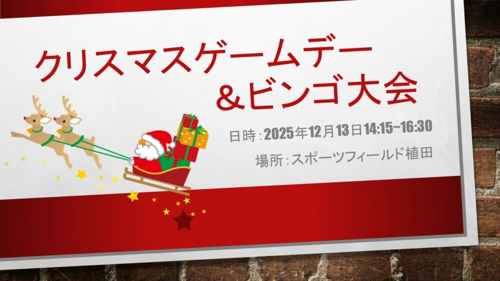 スポーツフィールド植田企画、クリスマスゲームデー&ビンゴ大会!!