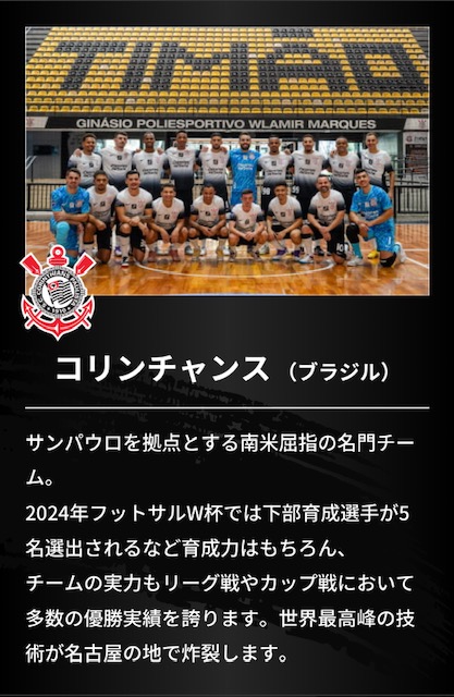 F-LEAGUE選抜とコリンチャンス(ブラジル)の試合観戦ができる!!