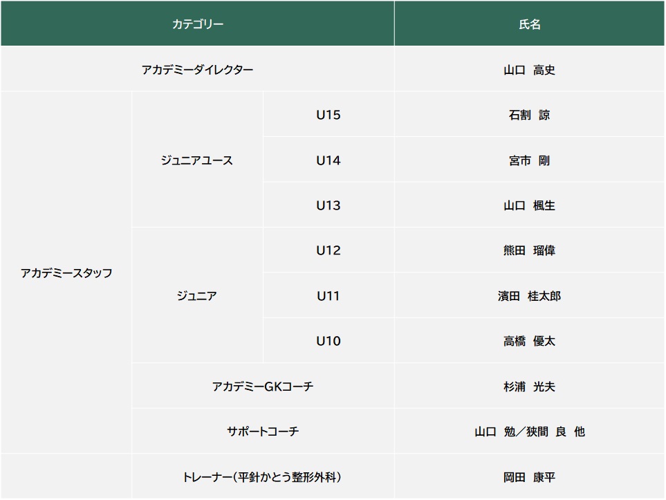 2026シーズンのスタッフ体制とアカデミージュニア、アカデミージュニアユースの活動についてお知らせします。