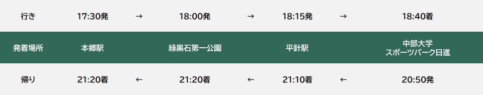 ・ナイタートレーニングの時間変更に伴い、送迎バスの時間も変更となります。