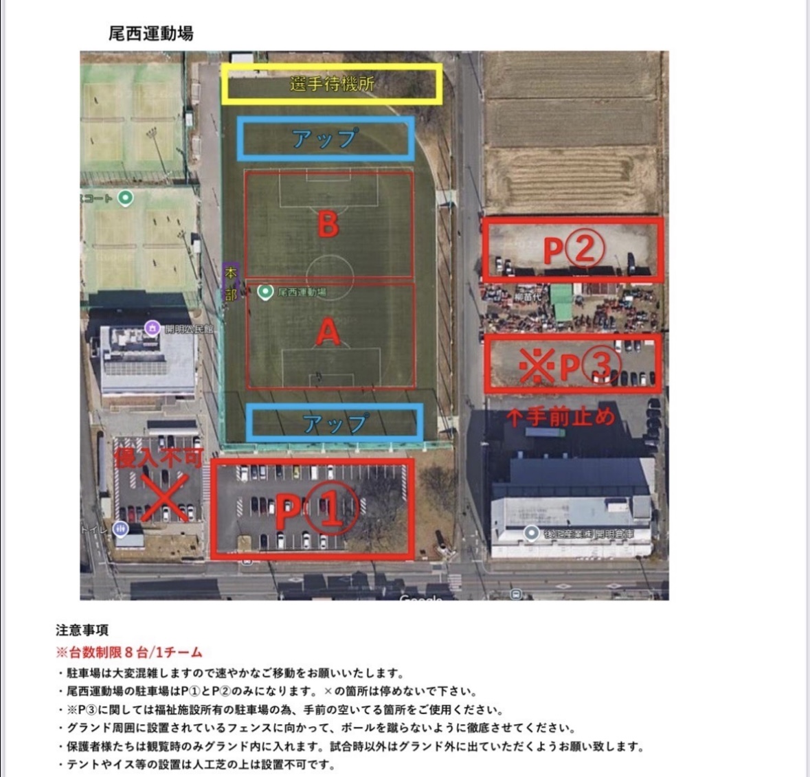 駐車場へは12:50以降に入場してください。