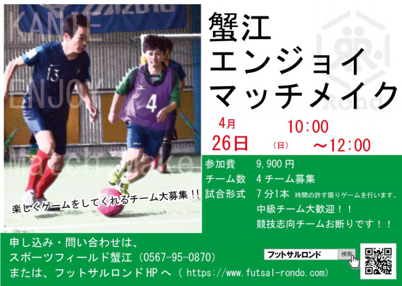 詳しくはこちらから→ Futsal Rondo マッチメイク